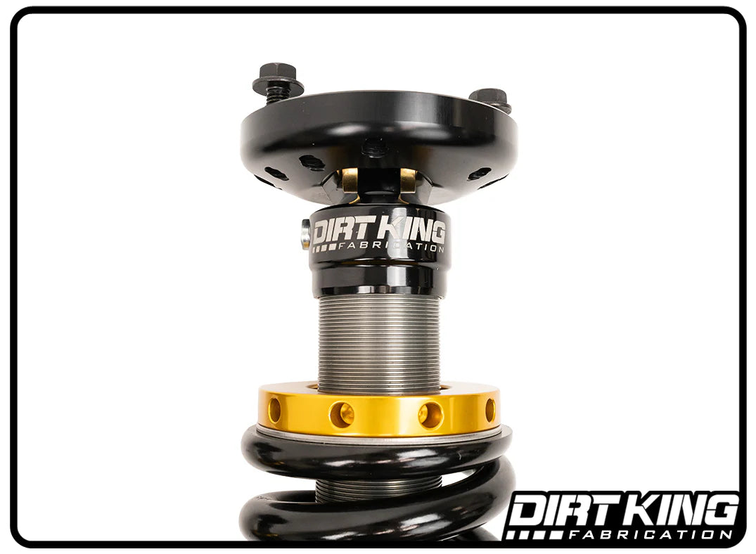 Improve your Tacoma's look and ride quality with the Dirt King 2.0 IFP Series coilovers. They come preset with 2.5" of lift to level your vehicle and include a spanner wrench for easy preload adjustments, especially useful when installing aftermarket bumpers or a winch. Although these shocks don't match the full performance of the Dirt King 2.5 DCA coilovers, they substantially outperform OE shocks by offering a smoother ride over rough terrains such as washboards and potholes. In addition they provide increased wheel travel to allow for higher articulation and improved damping on large dips.