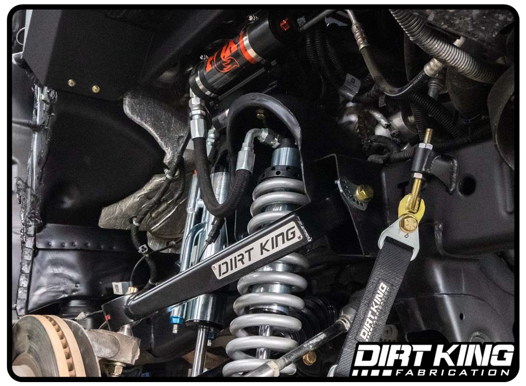 The Dirt King spec coilover shocks were developed specifically for our GM long travel kits with a custom hose layout, custom valving, and proper spring rates. They are ready to be installed right out of the box. For the best off road performance we recommend pairing these spec coilover shocks with our spec bypass shocks.